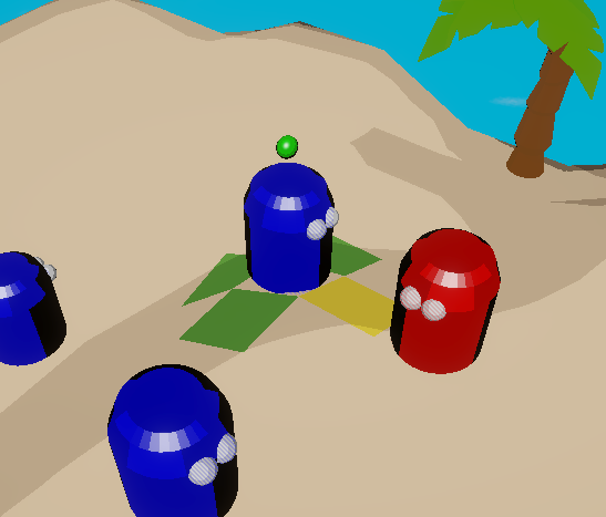 I then added in the ability to rotate the characters. This was fairly straightforward, but to begin with, I needed to know the direction the robots were facing. I decided for now just to give the robot prefab two white spheres for eyes.
